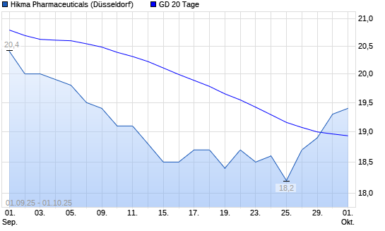 Mit dem Anstieg auf 19,50 EUR hat die Hikma Pharmaceuticals-Aktie am 30.09.2025 die 20-Tage-Linie nach oben gekreuzt.Die Hikma Pharmaceuticals-Aktie befindet sich seit dem 26.06.2025 im langfristigen ...weiterlesen