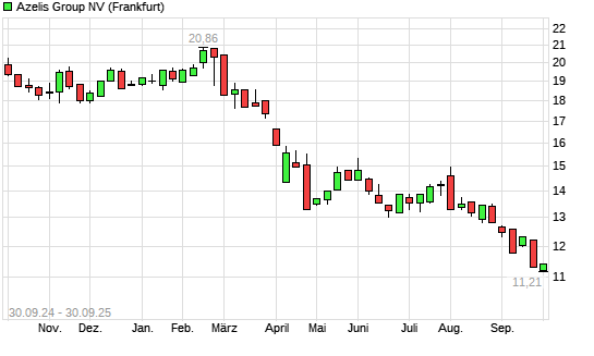 Mit dem Rücksetzer auf 11,21 EUR hat die Azelis Group N.V-Aktie (ISIN BE0974400328) am 29.09.2025 ein neues All-Time-Low erreicht und damit den Kurs vom 25.09.2025 eingestellt.Die Azelis ...weiterlesen