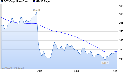 Mit dem Anstieg auf 139,25 EUR hat die IDEX Corporation-Aktie am 01.10.2025 die 38-Tage-Linie nach oben gekreuzt.Die IDEX Corporation-Aktie befindet sich seit dem 05.02.2025 im langfristigen ...weiterlesen