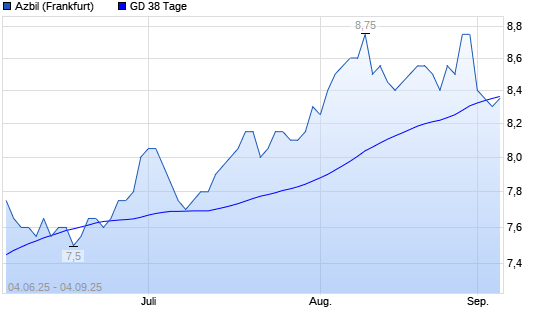 Mit dem Rücksetzer auf 8,30 EUR hat die Azbil Yamatake-Aktie am 03.09.2025 die 38-Tage-Linie nach unten gekreuzt.Die Azbil Yamatake-Aktie befindet sich seit dem 25.04.2025 im langfristigen ...weiterlesen