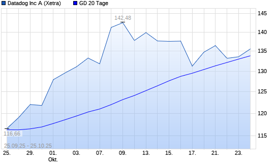 Mit dem Anstieg auf 135,02 EUR hat die Datadog-Aktie am 24.10.2025 die 20-Tage-Linie nach oben gekreuzt.Die Datadog-Aktie befindet sich seit dem 18.09.2025 im langfristigen Aufwärtstrend und ...weiterlesen