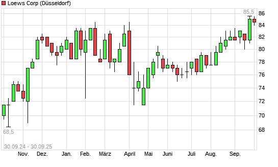 Mit dem Anstieg auf 85,50 EUR hat die Loews-Aktie (ISIN US5404241086) am 29.09.2025 ein neues All-Time-High erreicht und damit den Kurs vom 01.04.2025 eingestellt.Die Loews-Aktie befindet sich ...weiterlesen