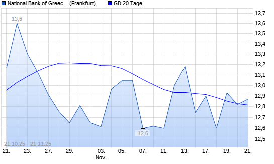 Mit dem Rücksetzer auf 12,82 EUR hat die National Bank Of Greece-Aktie am 20.11.2025 die 20-Tage-Linie nach unten gekreuzt.Die National Bank Of Greece-Aktie befindet sich seit dem 02.01.2025 ...weiterlesen