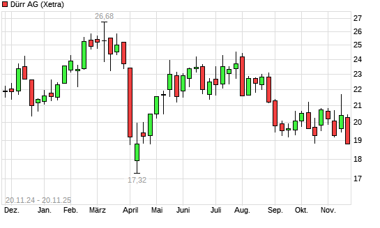 Mit dem Rücksetzer auf 19,06 EUR hat die Dürr-Aktie (ISIN DE0005565204) am 19.11.2025 ein neues 6-Monats-Tief erreicht und damit den Kurs vom 17.10.2025 eingestellt.Die Dürr-Aktie befindet ...weiterlesen