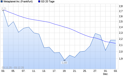 Mit dem Anstieg auf 2,18 EUR hat die Metaplanet-Aktie am 02.12.2025 die 20-Tage-Linie nach oben gekreuzt.Die Metaplanet-Aktie befindet sich seit dem 04.09.2025 im langfristigen Abwärtstrend ...weiterlesen