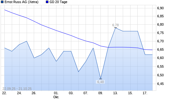 Mit dem Rücksetzer auf 6,60 EUR hat die Ernst Russ-Aktie am 20.10.2025 die 20-Tage-Linie nach unten gekreuzt.Die Ernst Russ-Aktie befindet sich seit dem 21.05.2025 im langfristigen Aufwärtstrend ...weiterlesen