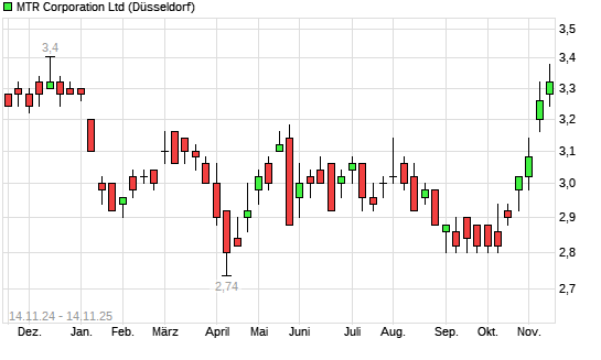 Mit dem Anstieg auf 3,38 EUR hat die MTR Corporation-Aktie (ISIN HK0066009694) am 13.11.2025 ein neues 6-Monats-Hoch erreicht und damit den Kurs vom 06.11.2025 eingestellt.Die MTR Corporation-Aktie ...weiterlesen