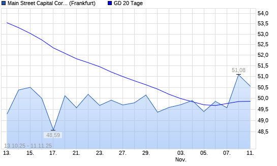 Mit dem Anstieg auf 51,08 EUR hat die Main Street Capital Corporation Common Stock-Aktie am 10.11.2025 die 20-Tage-Linie nach oben gekreuzt.Die Main Street Capital Corporation Common Stock-Aktie ...weiterlesen