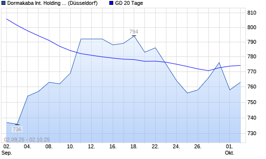 Mit dem Anstieg auf 779,00 EUR hat die Kaba Holding AG-Aktie am 01.10.2025 die 20-Tage-Linie nach oben gekreuzt.Die Kaba Holding AG-Aktie befindet sich seit dem 04.09.2025 im langfristigen Aufwärtstrend ...weiterlesen