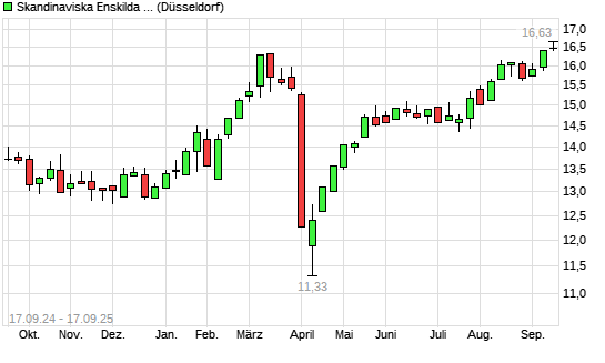 Mit dem Anstieg auf 16,60 EUR hat die Skandinaviska Enskilda Banken-Aktie (ISIN SE0000148884) am 16.09.2025 ein neues All-Time-High erreicht und damit den Kurs vom 15.09.2025 eingestellt.Die ...weiterlesen