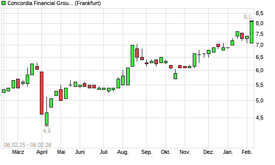Mit dem Anstieg auf 8,10 EUR hat die Concordia Financial Group-Aktie (ISIN JP3305990008) am 05.02.2026 ein neues All-Time-High erreicht und damit den Kurs vom 04.02.2026 ...weiterlesen