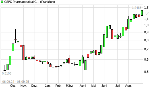Mit dem Anstieg auf 1,25 EUR hat die CSPC Pharmaceutical Group-Aktie (ISIN HK1093012172) am 05.09.2025 ein neues 3-Jahres-Hoch erreicht und damit den Kurs vom 02.11.2022 eingestellt.Die CSPC ...weiterlesen