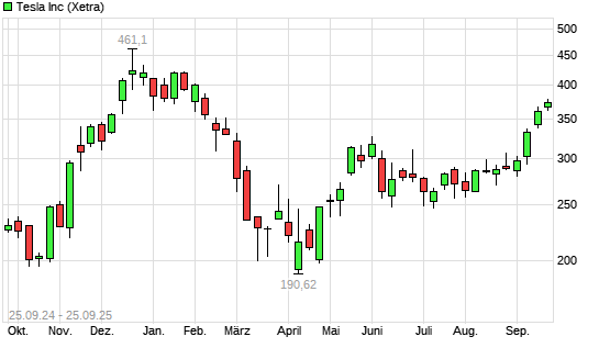 Mit dem Anstieg auf 377,35 EUR hat die Tesla-Aktie (ISIN US88160R1014) am 24.09.2025 ein neues 6-Monats-Hoch erreicht und damit den Kurs vom 22.09.2025 eingestellt.Die Tesla-Aktie befindet sich ...weiterlesen