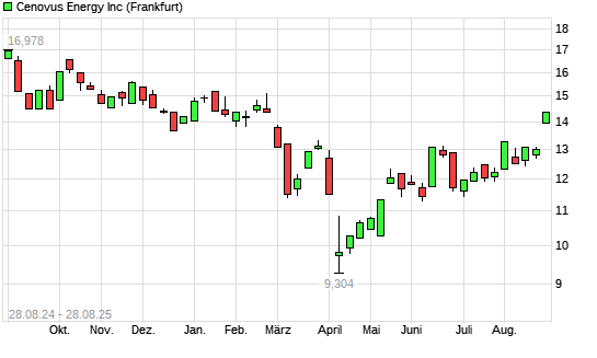 Mit dem Anstieg auf 14,27 EUR hat die Cenovus Energy-Aktie (ISIN CA15135U1093) am 27.08.2025 ein neues 6-Monats-Hoch erreicht und damit den Kurs vom 26.08.2025 eingestellt.Die Cenovus Energy-Aktie ...weiterlesen