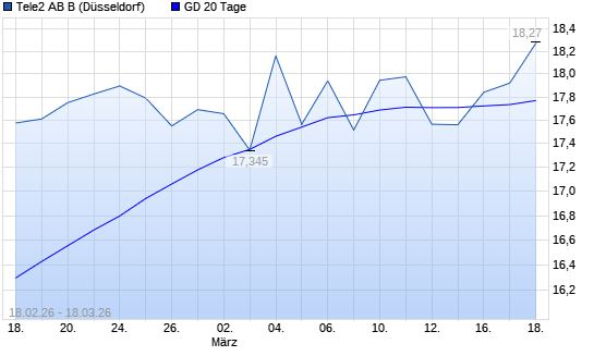 Mit dem Anstieg auf 17,85 EUR hat die Tele2 B-Aktie am 17.03.2026 die 20-Tage-Linie nach oben gekreuzt.Die Tele2 B-Aktie befindet sich seit dem 21.11.2025 im langfristigen ...weiterlesen