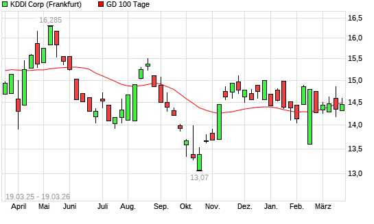 Mit dem Anstieg auf 14,59 EUR hat die KDDI-Aktie am 18.03.2026 die 100-Tage-Linie nach oben gekreuzt.Die KDDI-Aktie befindet sich seit dem 17.03.2026 im langfristigen Aufwärtstrend und ...weiterlesen
