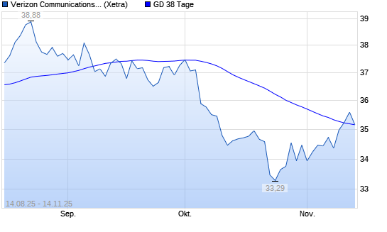 Mit dem Anstieg auf 35,50 EUR hat die Verizon-Aktie am 13.11.2025 die 38-Tage-Linie nach oben gekreuzt.Die Verizon-Aktie befindet sich seit dem 22.08.2025 im langfristigen Abwärtstrend und hat ...weiterlesen