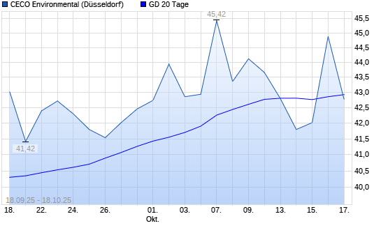 Mit dem Rücksetzer auf 41,62 EUR hat die CECO Environmental-Aktie am 17.10.2025 die 20-Tage-Linie nach unten gekreuzt.Die CECO Environmental-Aktie befindet sich seit dem 04.07.2025 im langfristigen ...weiterlesen