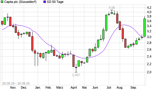 Mit dem Anstieg auf 2,90 EUR hat die Capita-Aktie am 29.09.2025 die 50-Tage-Linie nach oben gekreuzt.Die Capita-Aktie befindet sich seit dem 04.09.2025 im langfristigen Aufwärtstrend und hat ...weiterlesen