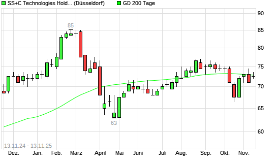 Mit dem Anstieg auf 73,50 EUR hat die SS&C Technologies-Aktie am 12.11.2025 die 200-Tage-Linie nach oben gekreuzt.Die SS&C Technologies-Aktie befand sich seit dem 07.11.2025 im langfristigen ...weiterlesen