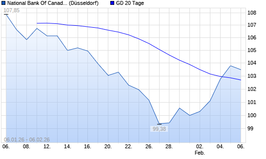 Mit dem Anstieg auf 103,25 EUR hat die National Bank Of Canada-Aktie am 05.02.2026 die 20-Tage-Linie nach oben gekreuzt.Die National Bank Of Canada-Aktie befindet sich seit dem ...weiterlesen