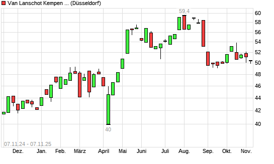 Mit dem Rücksetzer auf 49,05 EUR hat die Van Lanschot Kempen-Aktie (ISIN NL0000302636) am 06.11.2025 ein neues 6-Monats-Tief erreicht und damit den Kurs vom 10.09.2025 eingestellt.Die Van ...weiterlesen
