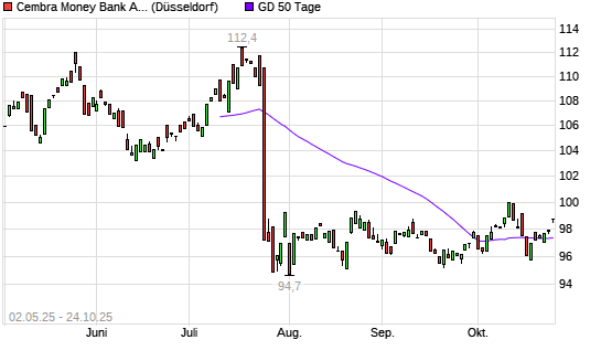 Mit dem Anstieg auf 97,95 EUR hat die Cembra Money Bank AG-Aktie am 23.10.2025 die 50-Tage-Linie nach oben gekreuzt.Die Cembra Money Bank AG-Aktie befindet sich seit dem 01.08.2025 im langfristigen ...weiterlesen