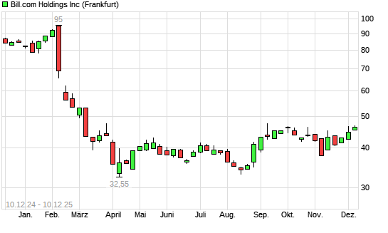 Mit dem Anstieg auf 46,46 EUR hat die Bill.com Holdings-Aktie (ISIN US0900431000) am 09.12.2025 ein neues 6-Monats-Hoch erreicht und damit den Kurs vom 30.09.2025 eingestellt.Die Bill.com Holdings-Aktie ...weiterlesen