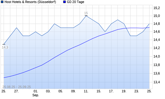 Mit dem Anstieg auf 14,60 EUR hat die Host Hotels & Resorts-Aktie am 24.09.2025 die 20-Tage-Linie nach oben gekreuzt.Die Host Hotels & Resorts-Aktie befindet sich seit dem 04.09.2025 im ...weiterlesen