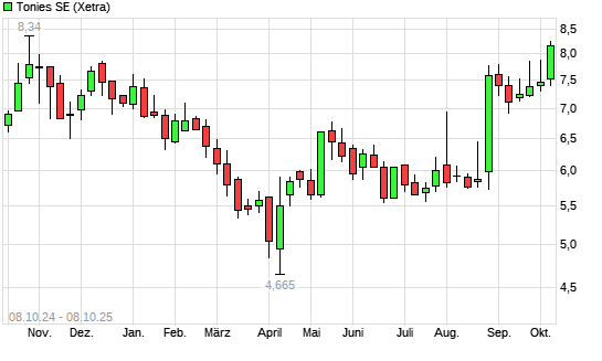 Mit dem Anstieg auf 8,24 EUR hat die Tonies-Aktie (ISIN LU2333563281) am 07.10.2025 ein neues 3-Jahres-Hoch erreicht und damit den Kurs vom 22.10.2024 eingestellt.Die Tonies-Aktie befindet sich ...weiterlesen