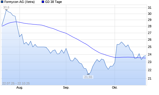 Mit dem Anstieg auf 23,75 EUR hat die Formycon-Aktie am 21.10.2025 die 38-Tage-Linie nach oben gekreuzt.Die Formycon-Aktie befindet sich seit dem 13.02.2025 im langfristigen Abwärtstrend und ...weiterlesen