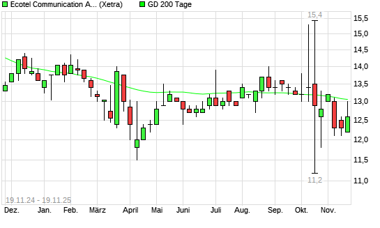 Mit dem Anstieg auf 13,00 EUR hat die Ecotel Communication-Aktie am 18.11.2025 die 200-Tage-Linie nach oben gekreuzt.Die Ecotel Communication-Aktie befand sich seit dem 17.10.2025 im langfristigen ...weiterlesen