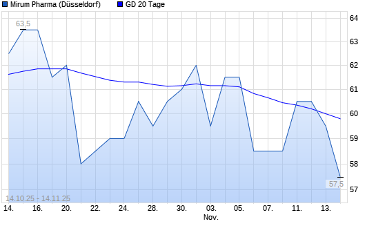 Mit dem Rücksetzer auf 58,50 EUR hat die Mirum Pharmaceuticals-Aktie am 13.11.2025 die 20-Tage-Linie nach unten gekreuzt.Die Mirum Pharmaceuticals-Aktie befindet sich seit dem 03.07.2025 ...weiterlesen