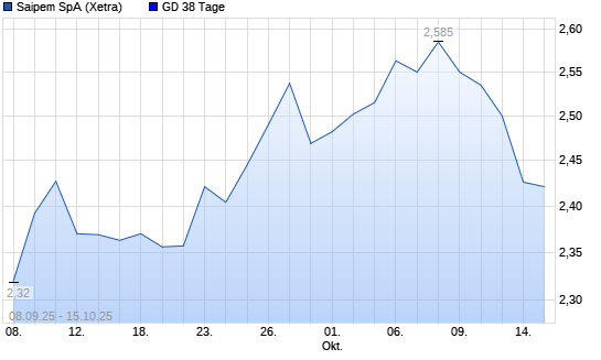 Mit dem Anstieg auf 2,44 EUR hat die Saipem-Aktie am 14.10.2025 die 38-Tage-Linie nach oben gekreuzt.Die Saipem-Aktie befindet sich seit dem 10.09.2025 im langfristigen Aufwärtstrend und hat ...weiterlesen