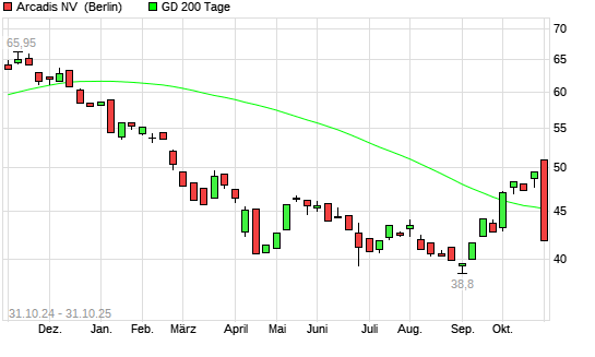 Mit dem Rücksetzer auf 41,98 EUR hat die Arcadis-Aktie am 30.10.2025 die 200-Tage-Linie nach unten gekreuzt.Die Arcadis-Aktie befand sich seit dem 02.10.2025 im langfristigen Aufwärtstrend ...weiterlesen