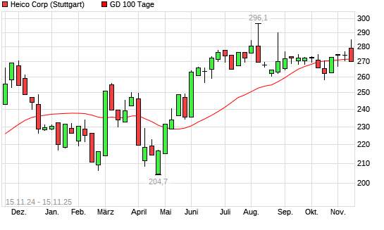 Mit dem Rücksetzer auf 270,00 EUR hat die HEICO-Aktie am 14.11.2025 die 100-Tage-Linie nach unten gekreuzt.Die HEICO-Aktie befindet sich seit dem 08.05.2025 im langfristigen Aufwärtstrend ...weiterlesen
