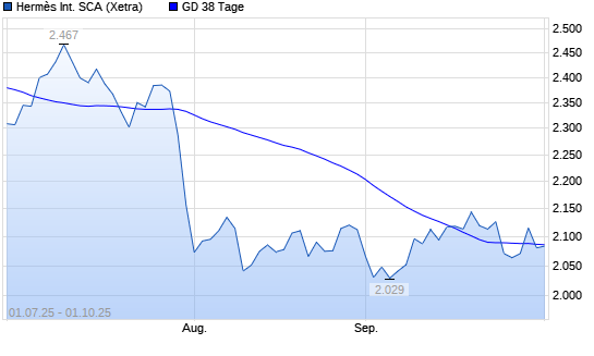 Mit dem Rücksetzer auf 2.072,00 EUR hat die Hermès-Aktie am 30.09.2025 die 38-Tage-Linie nach unten gekreuzt.Die Hermès-Aktie befindet sich seit dem 30.07.2025 im langfristigen Abwärtstrend ...weiterlesen