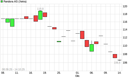 Mit dem Rücksetzer auf 107,50 EUR hat die Pandora-Aktie (ISIN DK0060252690) am 13.10.2025 ein neues 12-Monats-Tief erreicht und damit den Kurs vom 10.10.2025 eingestellt.Die Pandora-Aktie ...weiterlesen