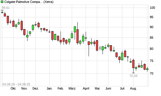 Mit dem Rücksetzer auf 71,20 EUR hat die Colgate-Palmolive-Aktie (ISIN US1941621039) am 03.09.2025 ein neues 12-Monats-Tief erreicht und damit den Kurs vom 28.08.2025 eingestellt.Die Colgate-Palmolive-Aktie ...weiterlesen