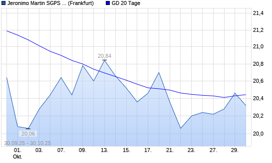Mit dem Anstieg auf 20,46 EUR hat die Jeronimo Martins-Aktie am 29.10.2025 die 20-Tage-Linie nach oben gekreuzt.Die Jeronimo Martins-Aktie befindet sich seit dem 14.10.2025 im langfristigen ...weiterlesen