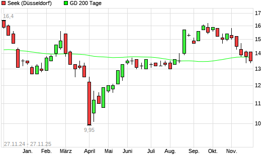 Mit dem Rücksetzer auf 13,50 EUR hat die Seek-Aktie am 26.11.2025 die 200-Tage-Linie nach unten gekreuzt.Die Seek-Aktie befand sich seit dem 24.11.2025 im langfristigen Aufwärtstrend und ...weiterlesen