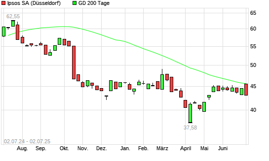 Mit dem Rücksetzer auf 43,54 EUR hat die Ipsos-Aktie am 01.07.2025 die 200-Tage-Linie nach unten gekreuzt.Die Ipsos-Aktie befand sich seit dem 27.06.2025 im langfristigen Aufwärtstrend ...weiterlesen