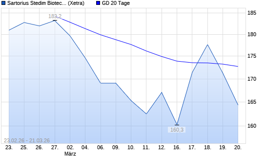Mit dem Rücksetzer auf 171,40 EUR hat die Sartorius Stedim Biotech-Aktie am 20.03.2026 die 20-Tage-Linie nach unten gekreuzt.Die Sartorius Stedim Biotech-Aktie befindet sich seit ...weiterlesen