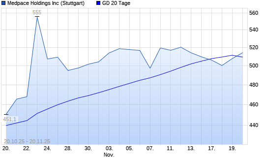Mit dem Anstieg auf 512,80 EUR hat die Medpace Holdings-Aktie am 19.11.2025 die 20-Tage-Linie nach oben gekreuzt.Die Medpace Holdings-Aktie befindet sich seit dem 22.07.2025 im langfristigen ...weiterlesen