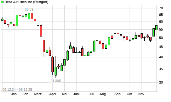 Mit dem Anstieg auf 57,42 EUR hat die Delta Air Lines-Aktie (ISIN US2473617023) am 04.12.2025 ein neues 6-Monats-Hoch erreicht und damit den Kurs vom 03.12.2025 eingestellt.Die Delta Air Lines-Aktie ...weiterlesen