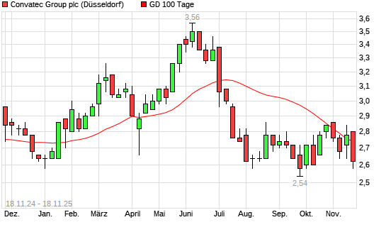 Mit dem Rücksetzer auf 2,54 EUR hat die ConvaTec Group-Aktie am 17.11.2025 die 100-Tage-Linie nach unten gekreuzt.Die ConvaTec Group-Aktie befindet sich seit dem 15.07.2025 im langfristigen ...weiterlesen