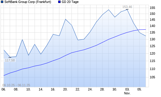Mit dem Rücksetzer auf 134,88 EUR hat die Softbank Group-Aktie am 05.11.2025 die 20-Tage-Linie nach unten gekreuzt.Die Softbank Group-Aktie befindet sich seit dem 20.06.2025 im langfristigen ...weiterlesen