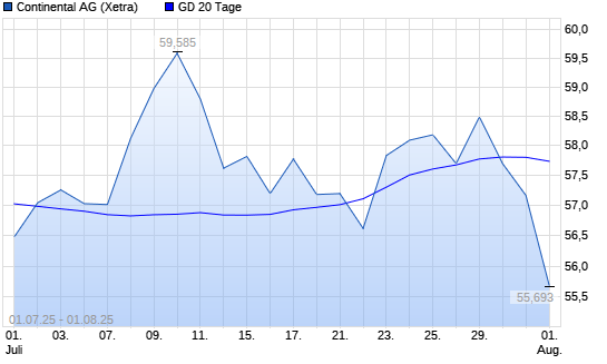 Mit dem Rücksetzer auf 75,70 EUR hat die Continental-Aktie am 31.07.2025 die 20-Tage-Linie nach unten gekreuzt.Die Continental-Aktie befindet sich seit dem 14.04.2025 im langfristigen Aufwärtstrend ...weiterlesen