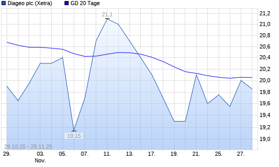 Mit dem Rücksetzer auf 19,80 EUR hat die Diageo-Aktie am 28.11.2025 die 20-Tage-Linie nach unten gekreuzt.Die Diageo-Aktie befindet sich seit dem 10.01.2025 im langfristigen Abwärtstrend ...weiterlesen