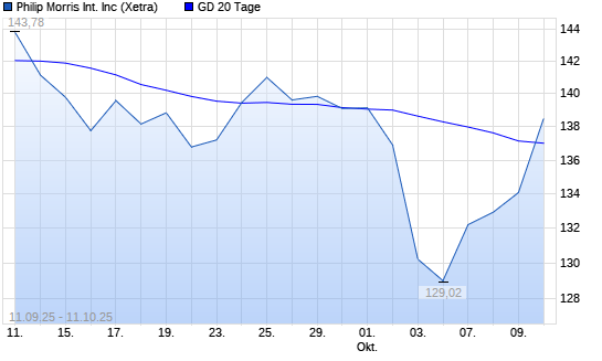 Mit dem Anstieg auf 138,96 EUR hat die Philip Morris International-Aktie am 10.10.2025 die 20-Tage-Linie nach oben gekreuzt.Die Philip Morris International-Aktie befindet sich seit dem 15.09.2025 ...weiterlesen